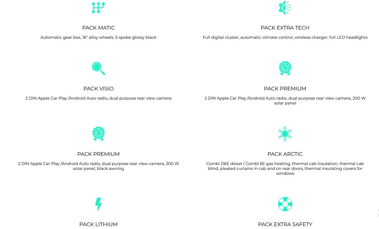Faceți-vă autoutilitara și mai unică și perfectă pentru nevoile dumneavoastră. Mobilvetta oferă pachete și accesorii suplimentare care se adaptează perfect modelelor individuale pentru a le crește versatilitatea, a le optimiza funcționalitatea și a le spori performanța.
