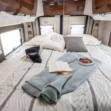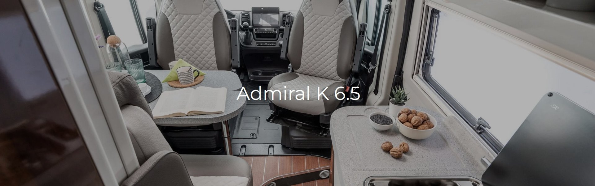 Pat cu ridicare electrică prin curele. Cu patul coborât, aveți un garaj cu înălțimea de 75 cm, în timp ce cu patul complet ridicat obțineți un compartiment cu înălțimea de 130 cm. Este încă posibil să reglați patul la orice înălțime dorită, să dormiți păstrând spațiu pentru echipamentul de dedesubt, să transportați orice tip de bagaje sau echipamente fără a scoate patul de fiecare dată. Capacul din tablă cu suprafață antiderapantă protejează podeaua, iar rampa inclusă facilitează încărcarea. În Admiral K 6.5, priza electrică și ieșirea externă pentru duș în garajul din spate sunt incluse în dotarea standard.