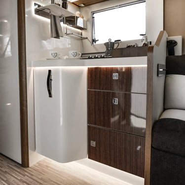 Șasiul AL-KO cu înălțime joasă este ideal pentru crearea unei podele duble, oferind mult spațiu de depozitare și permițând utilizarea garajelor din spate și încărcarea ulterioară. De asemenea, mărește spațiul interior, beneficiind și mai mult de un spațiu de locuit confortabil. UN GARAJ MAXI... ÎNTOTDEAUNA! REZERVOARE PROTEJATE LA ÎNGHEȚ.
