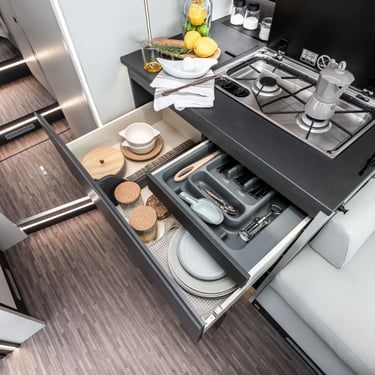 Faceți-vă autorulota și mai unică și perfectă pentru nevoile dumneavoastră. Mobilvetta oferă pachete și accesorii suplimentare care se adaptează perfect modelelor individuale pentru a le crește versatilitatea, a le optimiza funcționalitatea și a le spori performanța.