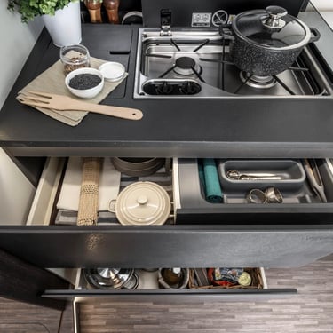Gestionarea multifuncțională și flexibilă a spațiului este esențială într-o autorulotă, deoarece nevoile se pot schimba în funcție de indivizi și de momentul zilei. Kea Kompakt deschide relația dintre mai multe medii. Zona de locuit este în comunicare vizuală și fizică cu bucătăria, în beneficiul conexiunilor și al sociabilității.