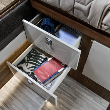 Soluțiile inovatoare sporesc conceptul de locuibilitate la bord. Proiectată cu forme și volume distinctive, Krosser 64 oferă interioare fără nimic lăsat la voia întâmplării. Lux și spațiu din toate punctele de vedere. Dacă călătoriți în cuplu, alegeți versiunea Low Profile, care oferă mai mult spațiu interior de locuit pentru o înălțime mai mare în zona de living. Dacă călătoriți cu familia, soluția ideală pentru dvs. este semi-autorulota cu pat rabatabil.